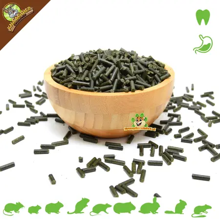 Die Pellets eignen sich zur Beschäftigung. In diesem Fall können Sie sie gelegentlich über das Futter oder in das Gehege streuen. Sie können sie auch als Snack geben.