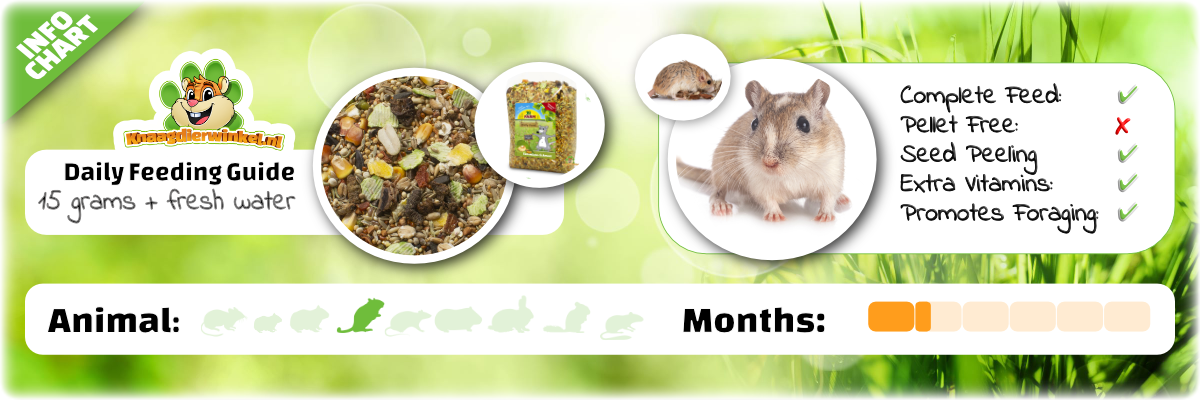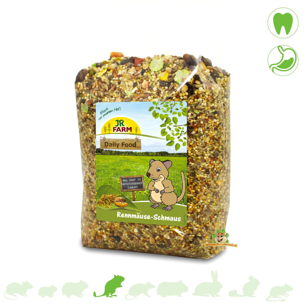 JR Farm Gerbil Feast Gerbilfutter ist ein wahrer Genuss für Rennmäuse. Es handelt sich um eine natürliche, vollwertige Futtermischung, die für alle Rennmäuse geeignet ist. Diese vielseitige Premium-Mischung mit Wildsamen und reichlich tierischem Eiweiß wurde speziell für Rennmäuse entwickelt und wird immer gefressen, wenn ein leeres Nest zurückbleibt. Mit viel Gemüse, Vitaminen und Mineralstoffen für ein gesundes und vitales Leben!