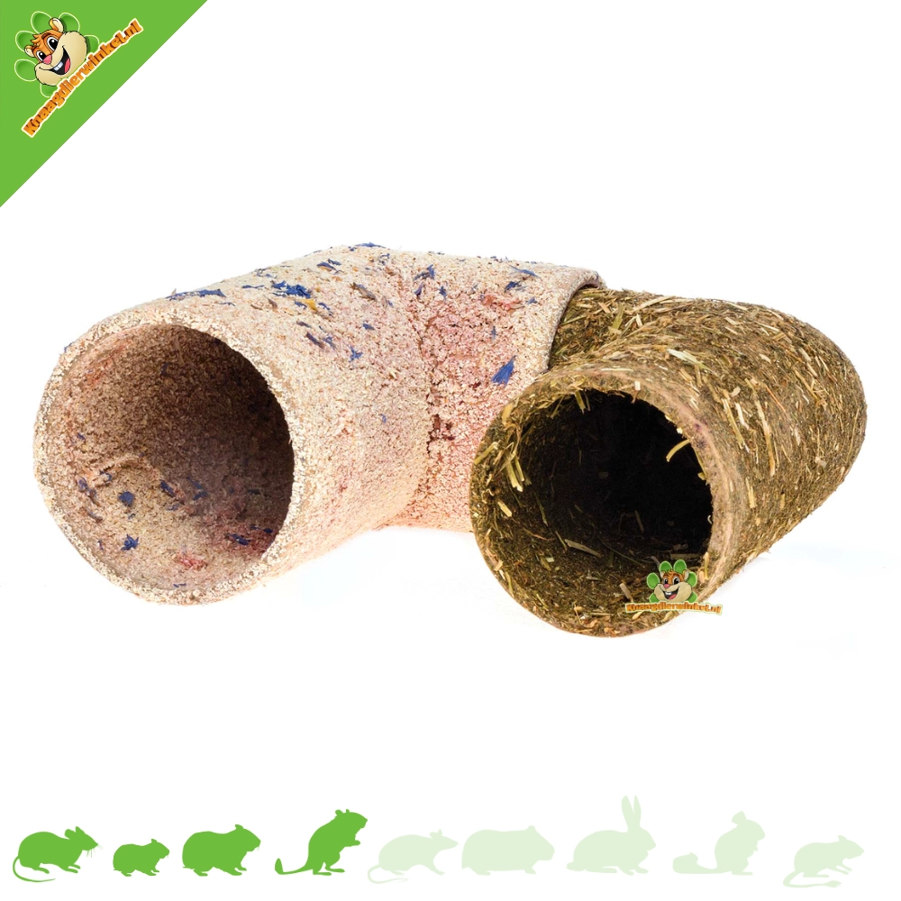 Naturbelassener Heutunnel mit Blumen und Gemüse in Doppeleckform. Ideal als Erweiterung des Tunnelsystems für Kleinnager.
