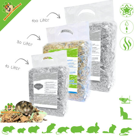 | Sicherheitsinformationen:: | Beobachten Sie das Tier beim ersten Gebrauch, um zu sehen, wie es mit der Einstreu umgeht. Kontrollieren Sie die Einstreu vor der Verwendung immer auf mögliche Auffälligkeiten. |