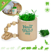 Wir nennen diese Art von Spielzeug Knabber- oder Zerlegespielzeug. Die Tiere können es werfen, daran knabbern, es auseinanderziehen, Lärm machen usw. Schön, um Energie zu verbrennen oder ihren Nagerbedarf zu decken. Es ist natürlich sehr wichtig, dass diese Spielzeuge für Meerschweinchen geeignet und auch sicher sind.