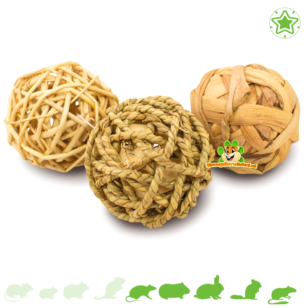 Die aus verschiedenen Gräsern, Rattan und Holz gefertigten Nature Trio Bälle bieten Ihren kleinen Lieblingen ein vielseitiges Spielerlebnis. Sie können die Bälle rollen, schieben und damit spielen und dabei ihrer natürlichen Neugier und Geschicklichkeit freien Lauf lassen. Das Tolle daran: Die Bälle sorgen nicht nur für Unterhaltung, sondern bieten auch gesunden Knabberspaß.