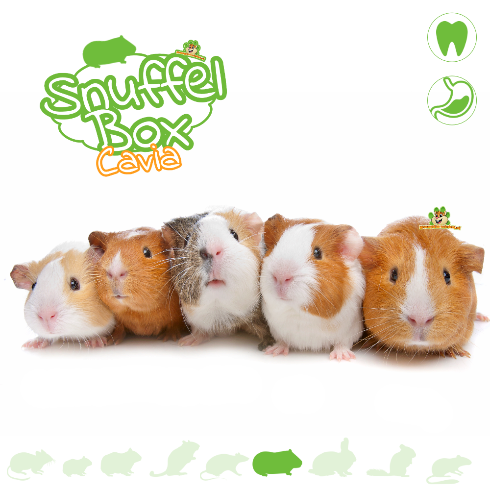 Meerschweinchen lieben einen gut gefüllten Heuplatz, ein bisschen Stöbern und kleine Erfolgserlebnisse. Deshalb ist die Snuffelbox Cavia so toll: eine Überraschungsbox, mit der Sie das Gehege Ihrer Meerschweinchen ganz einfach abwechslungsreicher gestalten können. Der Inhalt bleibt ein Geheimnis, aber Sie können sich auf Dinge freuen, die zum Schnüffeln, Stöbern, Knabbern und Entdecken anregen – perfekt für Meerschweinchen.