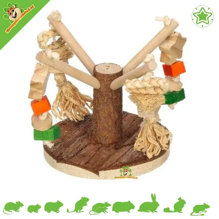 Suchen Sie ein natürliches Spielzeug, mit dem Ihr Nager oder Kaninchen wirklich etwas anfangen kann? Dieser Spielbaum für Kaninchen und Nager ist nicht nur schön anzusehen, sondern auch besonders interessant zum Spielen. Der Baum steht auf einem stabilen, großen Holzsockel und hat mehrere abstehende Äste mit verschiedenen beweglichen Spielzeugen aus Holz, Seil und Naturmaterialien. So gibt es immer etwas zu entdecken, anzufassen, zu ziehen oder daran zu knabbern.