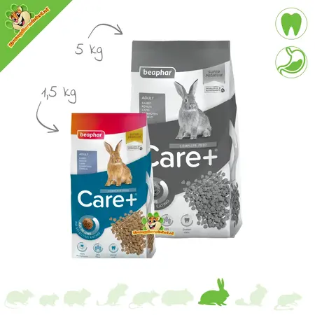 Adult rabbits need a diet rich in fiber that matches their natural feeding habits. Beaphar Care+ Rabbit is a complete rabbit food with a high fiber content of 25%, specially developed for adult rabbits.