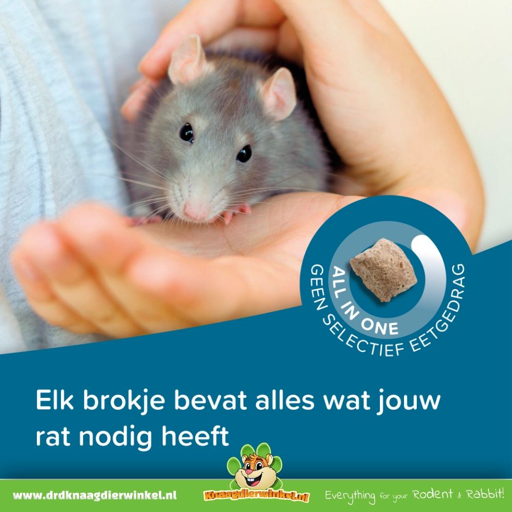 Rats can sometimes develop preferences in a mixed mix. With all-in-one rat kibble, your rat gets the same basic food in every bite. This often gives you more portion control and makes it easier to keep vegetables and snacks as a genuine supplement.