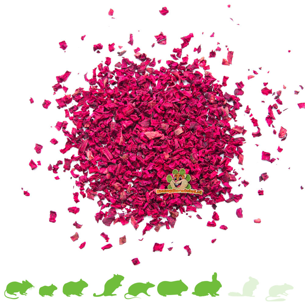 Give your rodents the opportunity to enjoy the tasty and colorful world of Dried Beetroot. Place a small amount in their enclosure and watch them enthusiastically explore and nibble on this delicious treat. Always ensure fresh water is available for your pets.