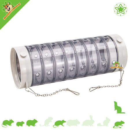 The Ferplast FPI 4840 Straight Tube is a very spacious tube suitable for rats, among other things. Made of very hard plastic, it features ventilation holes and a simple hanging system. The tube is 29 cm long and has a generous diameter of 10 cm. Thanks to the plastic, the tube is easy to clean, which is especially convenient when used for rats!