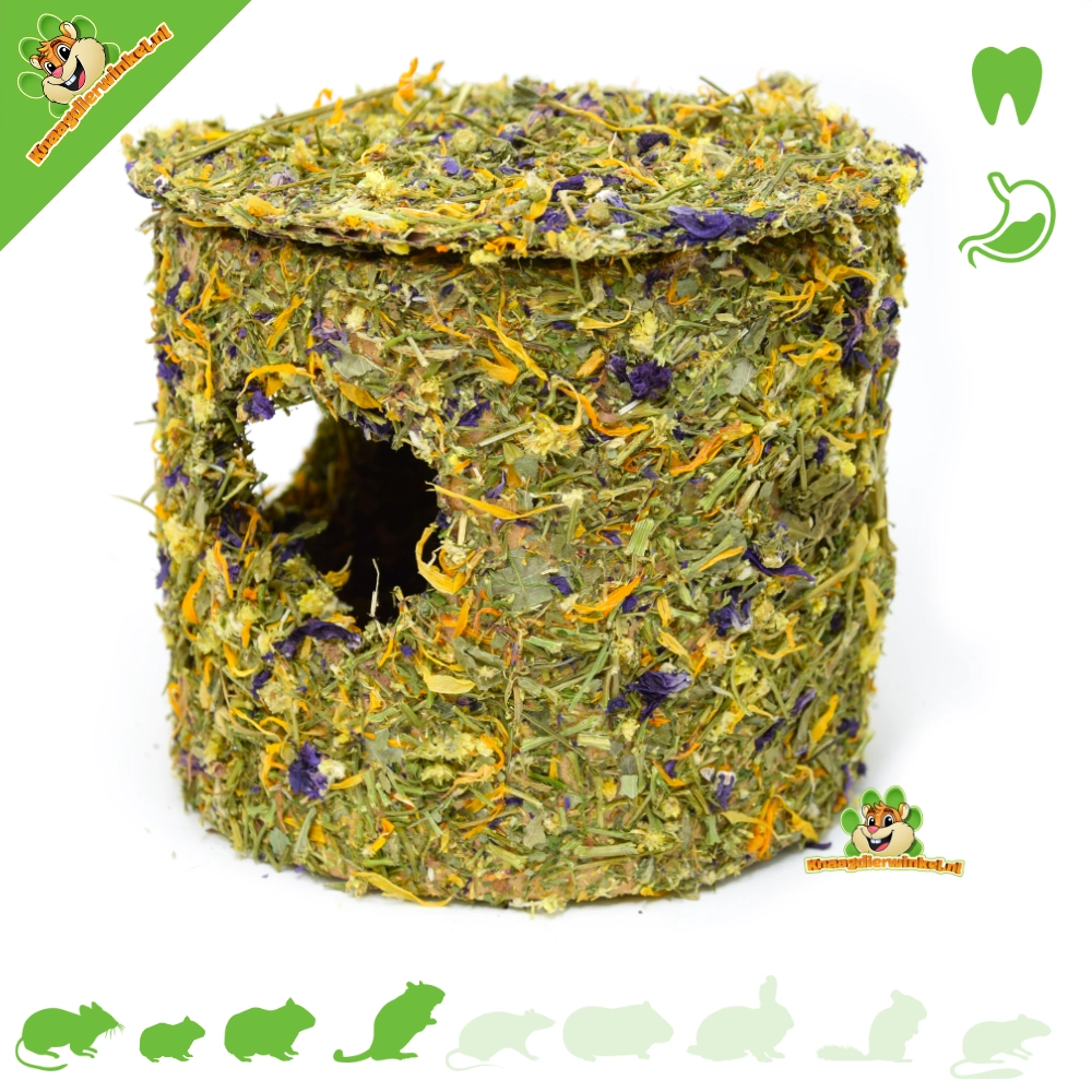 100% natural Herb House with Flowers, lined with fragrant herbs and flowers. Ideal as a hiding place and edible snack for small rodents.