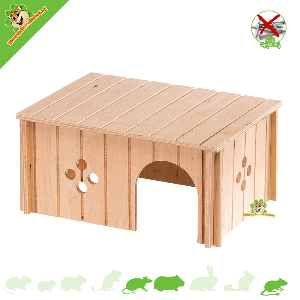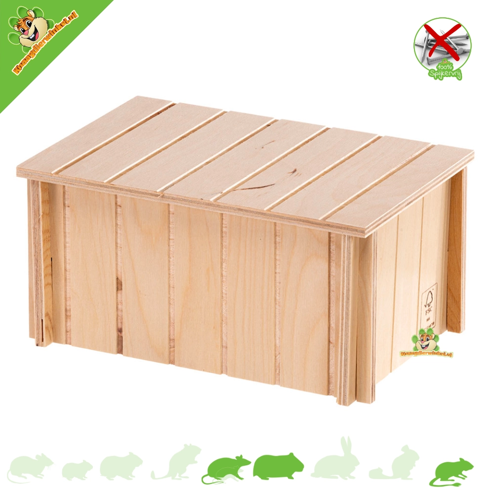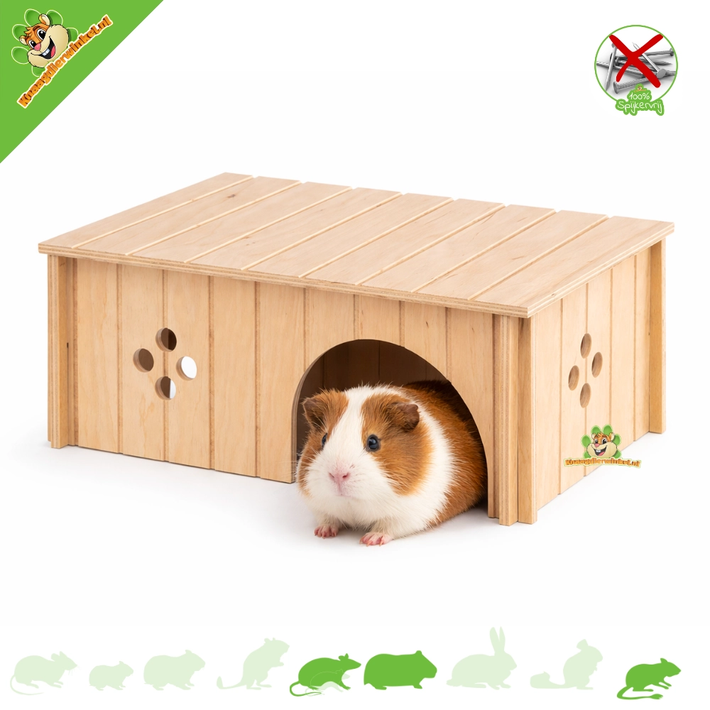 We use this model as a guinea pig house, but it is also fun to use for Syrian hamsters and rats . For a Syrian hamster, it provides a nice covered spot in the setup, while for rats it can be used effectively as an extra hiding place or as part of a larger enclosure with multiple resting spots. This makes it a versatile wooden house for various animals, as long as you match the size to your setup.