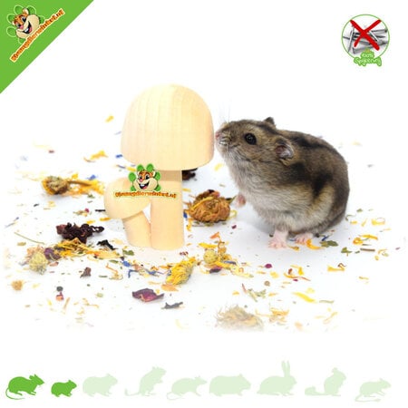 The Hamsterscaping Deco Wooden Mushrooms are not only decorative elements, but also autumnal atmosphere for your hamster's enclosure. They add a touch of natural beauty and coziness to any hamsterscape. Whether you want to create a seasonal theme or are simply looking for a charming addition to your furry friend's living environment, these wooden mushrooms are sure to turn heads and create an enchanting atmosphere for your hamster.