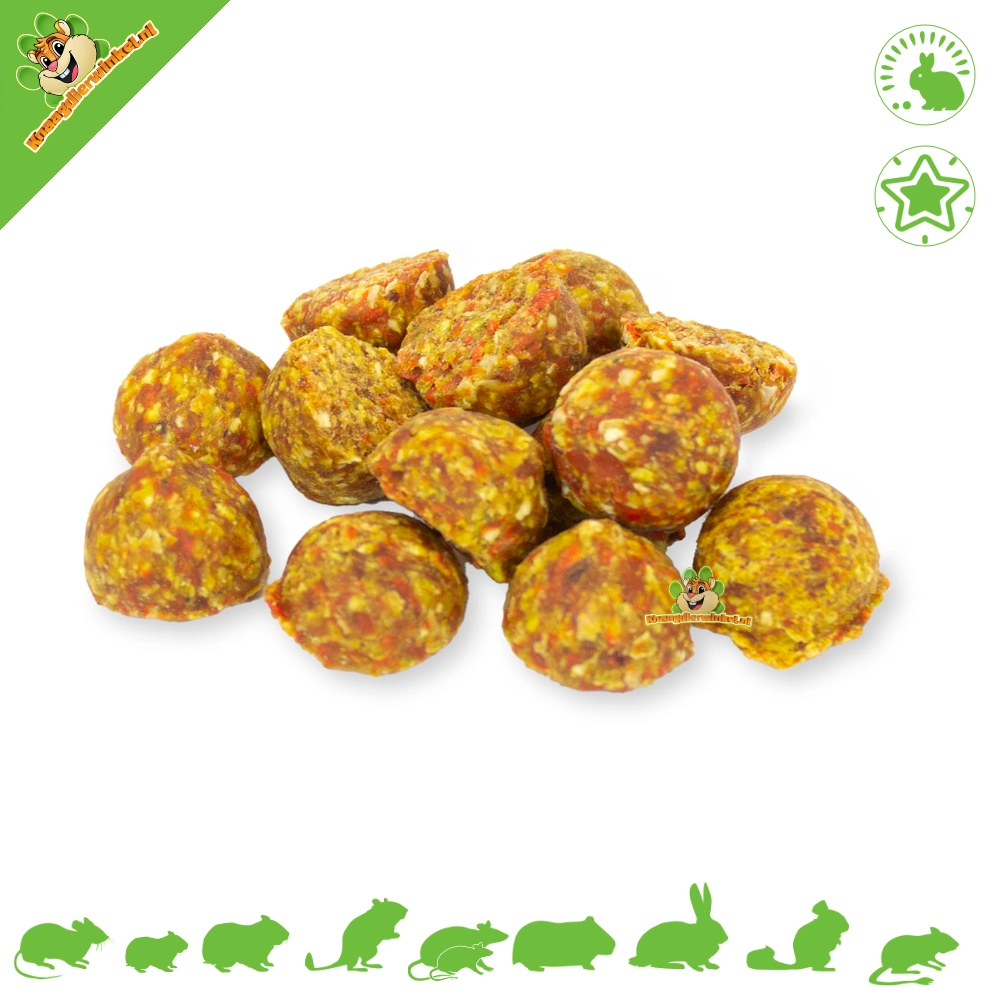 The menu features a four-course meal for rodents and rabbits! A colorful selection of aromatic and species-specific delicacies creates an irresistible menu for rodents and rabbits on the gourmet plate.