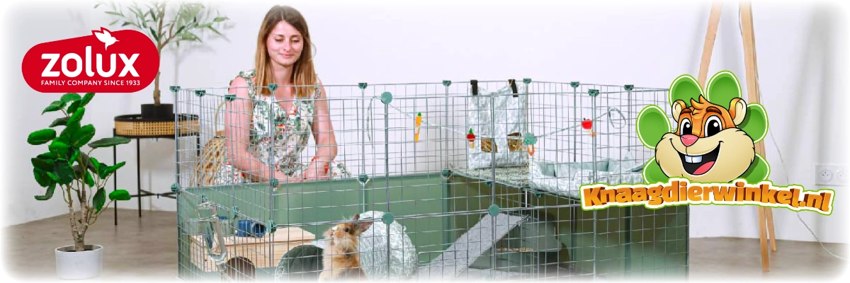 The Zolux Neolife Rabbit Hutch is a spacious and modular enclosure for dwarf and small rabbits. The low, uncluttered design is well-suited to rabbits that enjoy quietly exploring their surroundings and utilizing plenty of continuous space. Thanks to the panels, clips, floor mat, and the included protective net, you can easily create a neat basic setup that you can expand later.