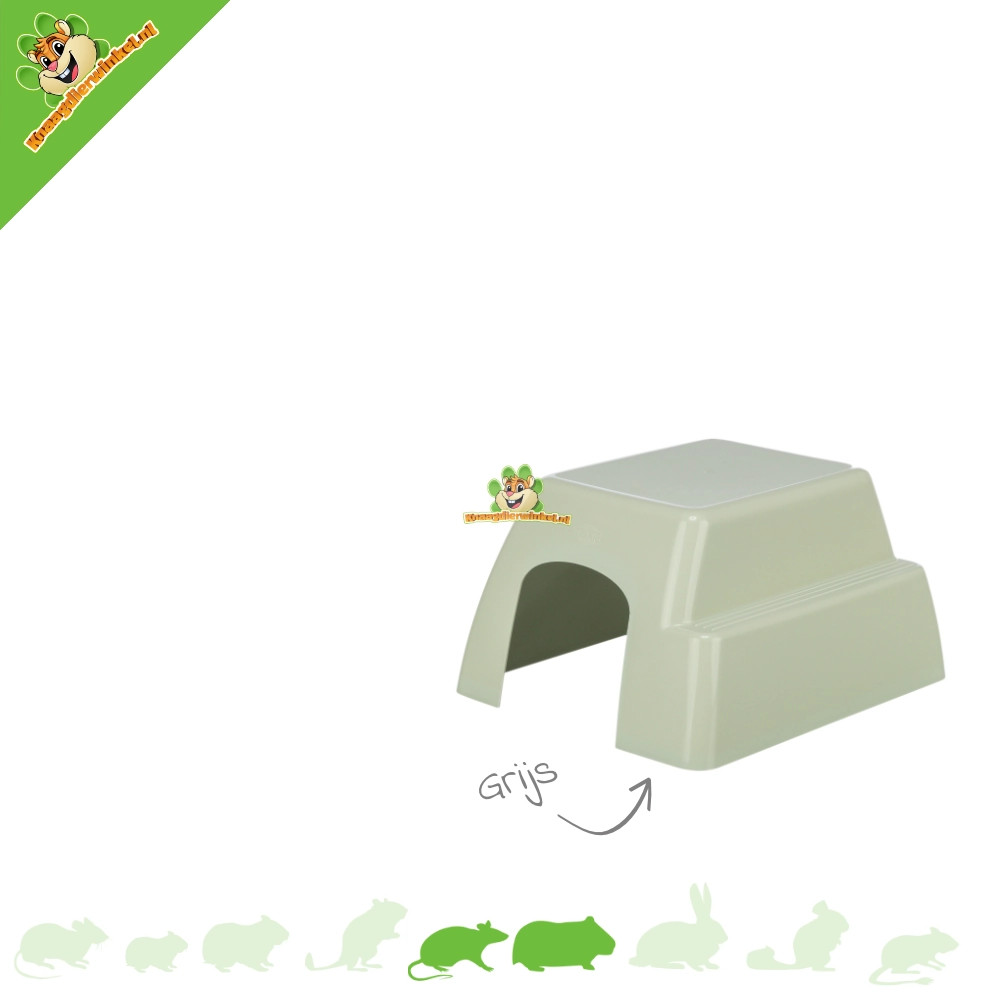 Heel fijn huisje voor mijn ratten, hij is van kunststof dus makkelijk schoon te maken. Hij is wel ligt waardoor mijn ratten er mee in de weer gaan en hem snel verhuizen naar een andere plek in de kooi. Ze zijn er maar druk mee!