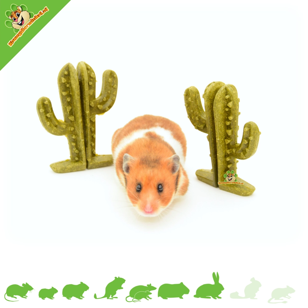 The Veggie Bites Cactus 9 cm is an original, healthy, and completely edible cactus-shaped snack. Made with only natural ingredients, this snack not only offers your little rodent a delicious treat but also supports natural tooth wear.