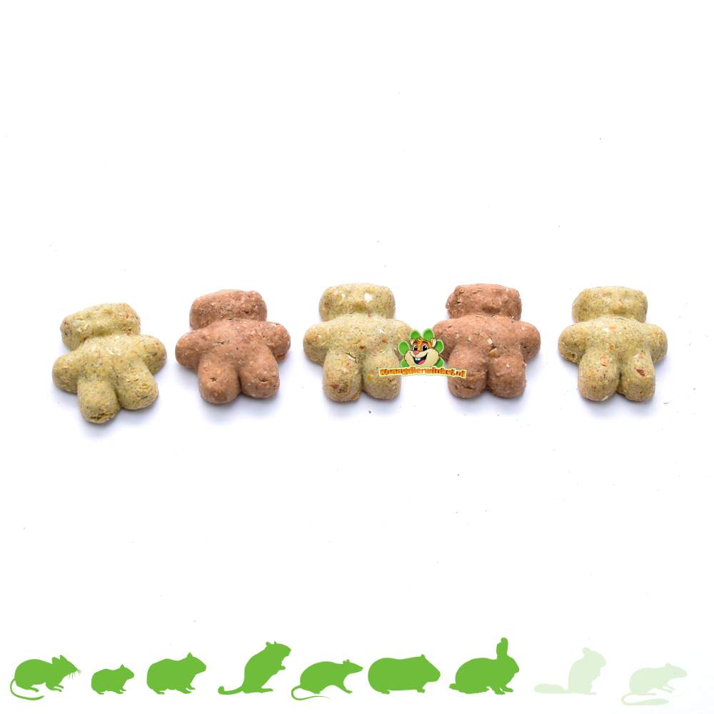 Make snack time extra fun with Vitakraft Happy Teddy Cookies! These cute snack bears are a real treat for rodents and rabbits. They contain valuable grains and tasty vegetables and are completely free of added sugars and artificial colours. Suitable for all rodent species and a party in the food bowl.