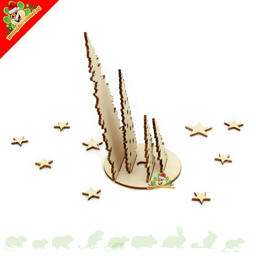 Los árboles y estrellas de Navidad de DIY Hamsterscaping te permiten decorar fácilmente la jaula de tu hámster y crear un ambiente invernal. Las piezas vienen precortadas y se desprenden fácilmente de la madera. Gracias a su ingenioso diseño, puedes ensamblarlas sin pegamento ni herramientas.