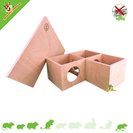 Nuestros productos están diseñados para satisfacer las necesidades específicas de cada especie de sus mascotas: Con una superficie de 31 x 31 cm y una altura de 13 cm, la casa esquinera Luna ofrece amplio espacio para su roedor. Tanto el tamaño de la casa como las entradas se adaptan a las necesidades naturales de los animales. Su interior es espacioso y acogedor. Ofrece un espacioso sistema de tres cámaras donde su roedor puede elegir su zona de descanso o despensa a su gusto, como en una madriguera natural para hámster. El techo desmontable facilita la inspección del nido.