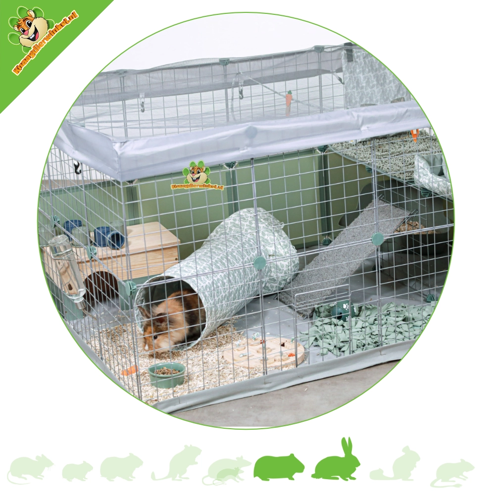La conejera Zolux Neolife es un recinto amplio y modular para conejos enanos y pequeños. Su diseño bajo y despejado es ideal para conejos que disfrutan explorando tranquilamente su entorno y aprovechando un amplio espacio continuo. Gracias a los paneles, los clips, la alfombrilla y la red protectora incluidos, puedes crear fácilmente una configuración básica ordenada que podrás ampliar más adelante.
