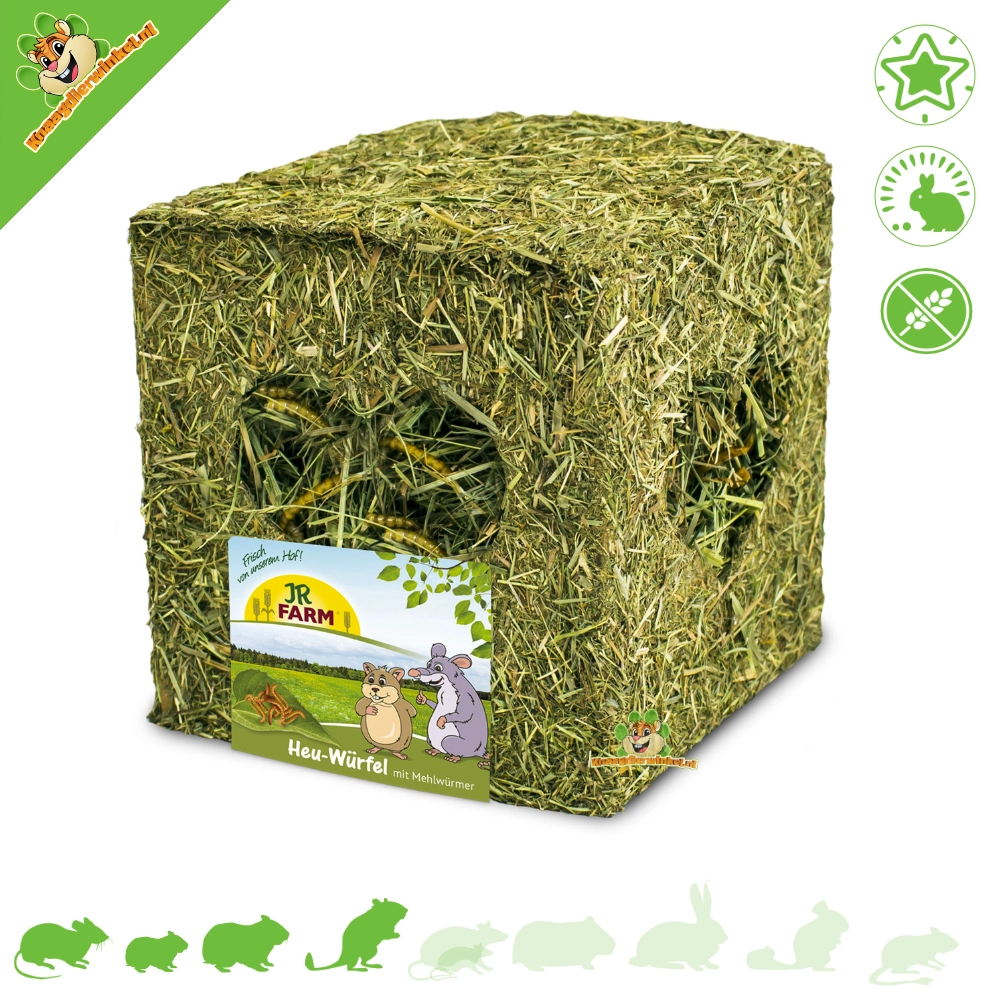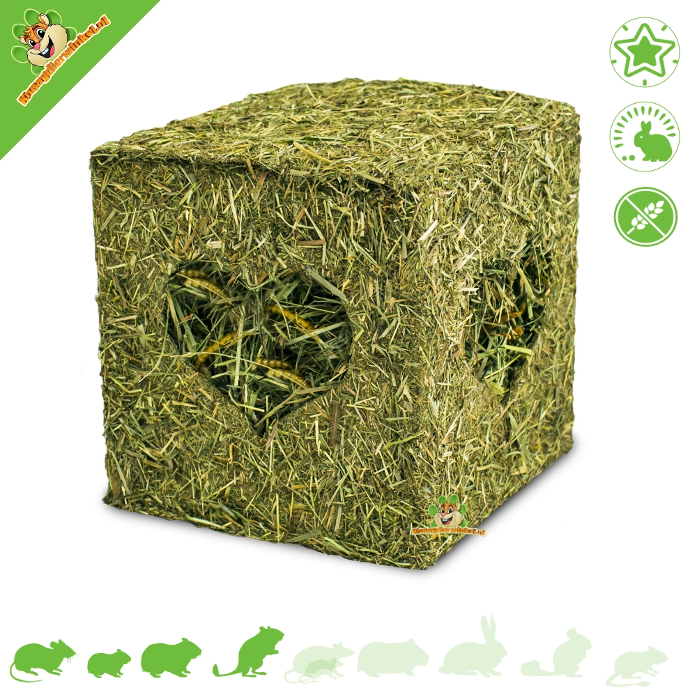 Este bonito cubo de hierba está lleno de heno maravillosamente perfumado y crujientes gusanos secos. Los pequeños roedores omnívoros como ratones, hámsteres enanos, hámsteres, jerbos y ratas lo disfrutarán.