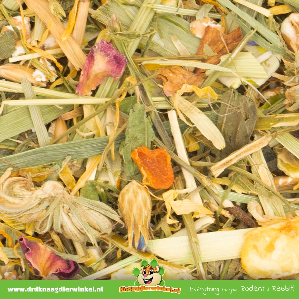 ✔ Variedad de ingredientes: El cubo Veldkruiden contiene una mezcla de ingredientes saludables como perejil, copos de avena, copos de trigo, remolacha, copos de guisantes, alfalfa, zanahorias, ortiga, flores de caléndula y mucho más.