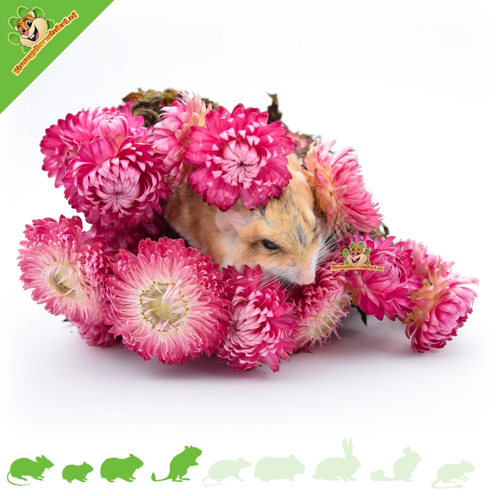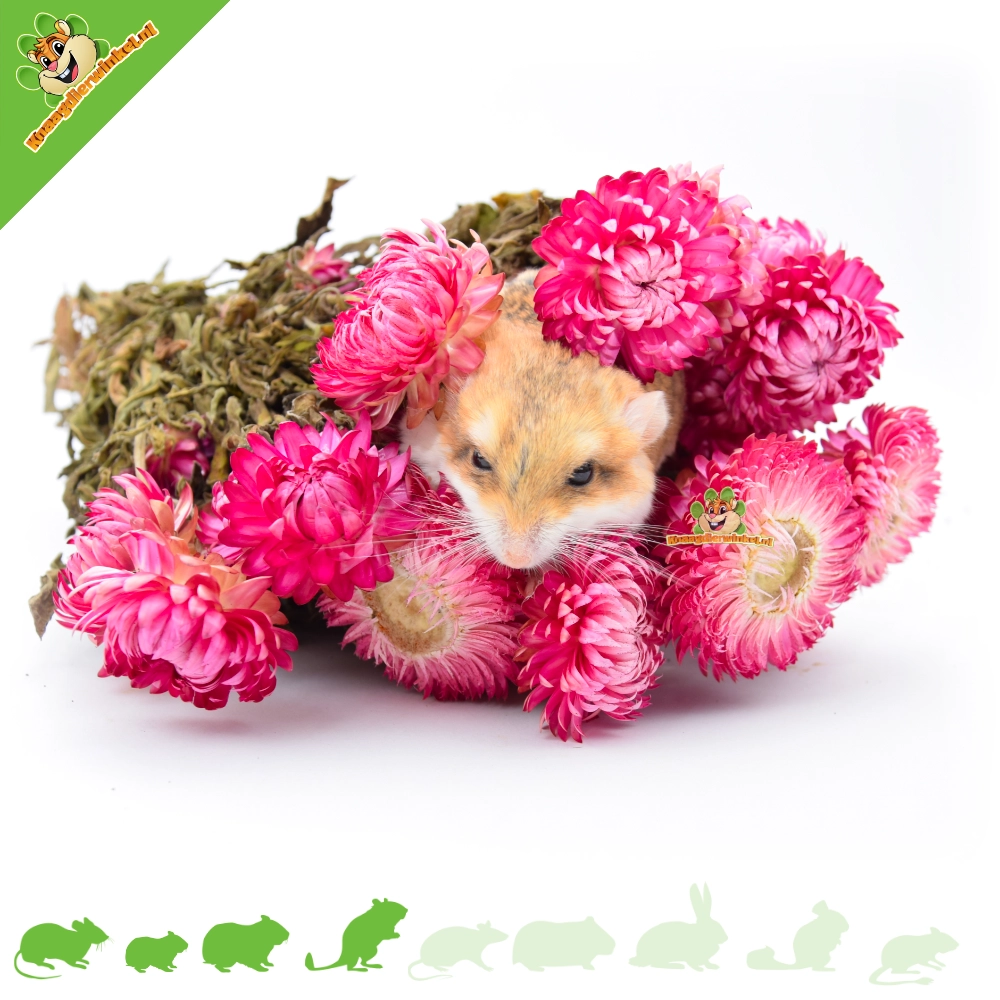 Las siemprevivas secas de color rosa oscuro son especialmente adecuadas como decoración natural y para enriquecer el olfato de pequeños roedores a los que les gusta explorar su recinto.
