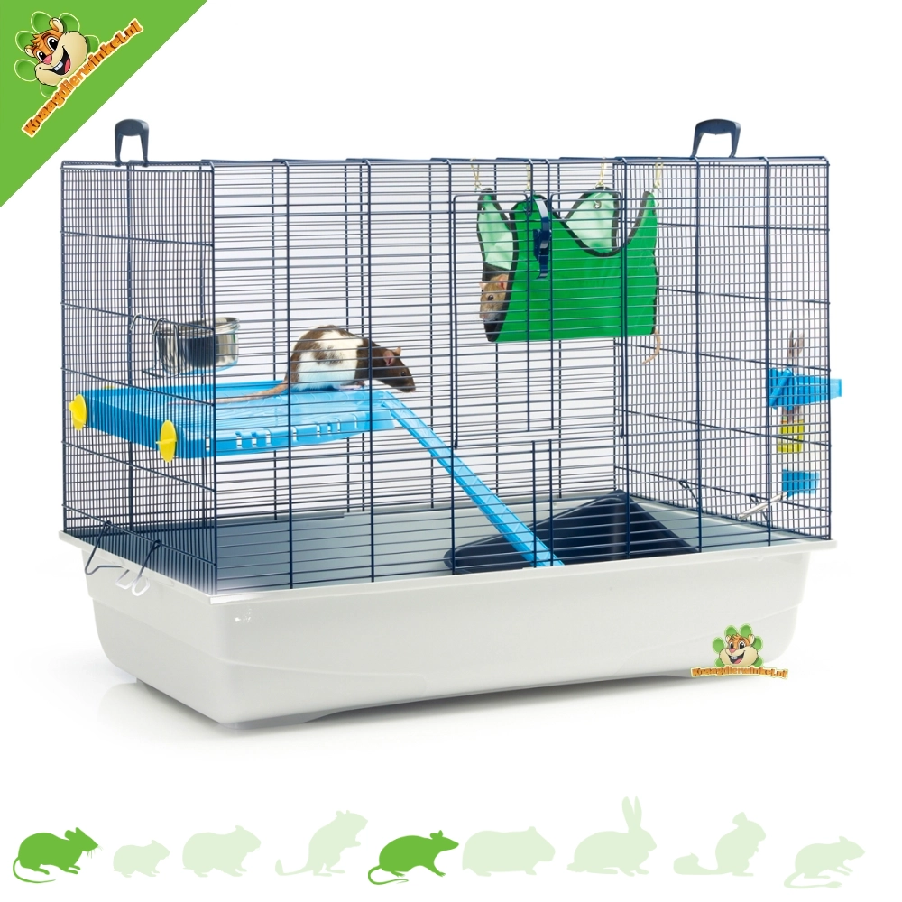 ✔ Equipamiento completo: Incluye una cómoda hamaca, un inodoro esquinero, una plataforma con escalera, un comedero de acero inoxidable y una botella de agua de 500 ml. Todo lo que tus pequeñas ratas necesitan en una sola jaula.