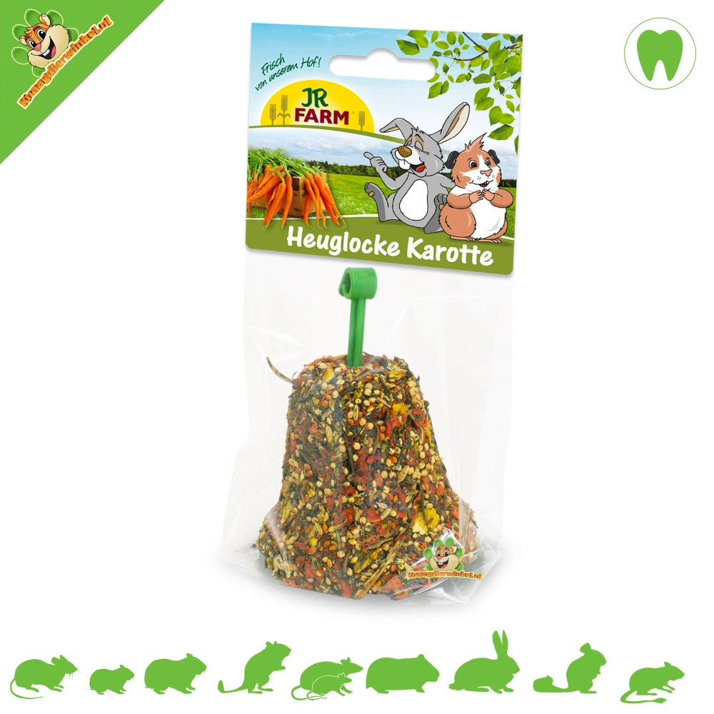 La campana de heno de hierbas, flores y raíces de JR Farm ofrece una variedad sabrosa y nutritiva en la dieta de sus roedores y conejos. Estimula su conducta alimentaria natural, aporta nutrientes y contribuye a su bienestar general. ¡Agregue esta campana a su rutina diaria para disfrutar de un placer saludable y agradable!