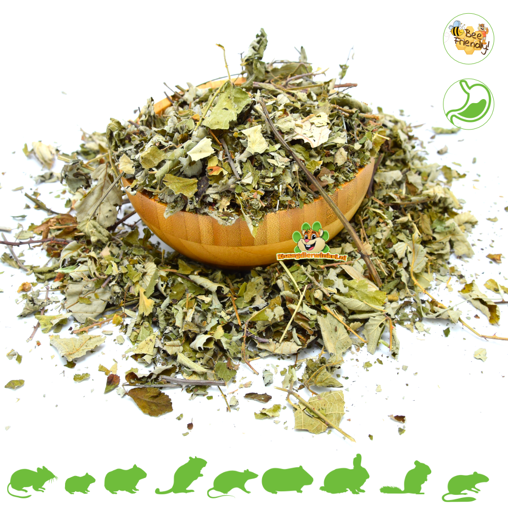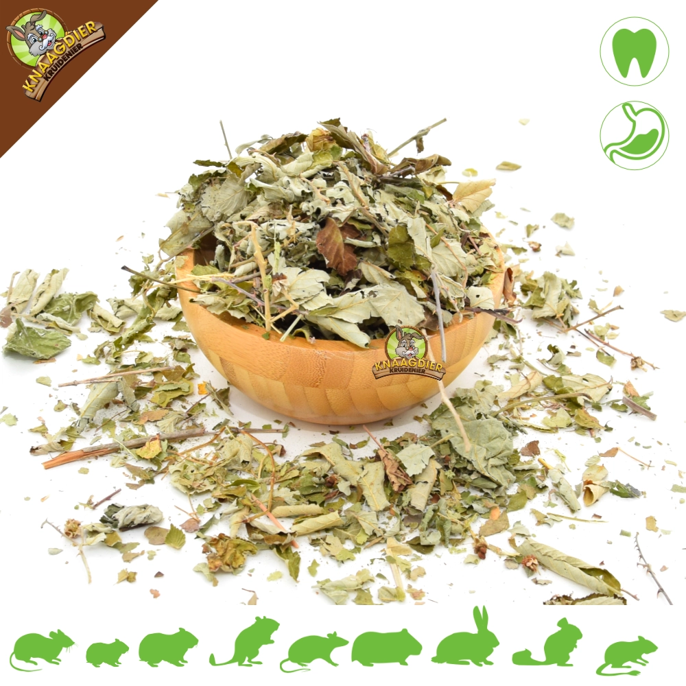 Las hojas secas de zarzamora son un bocadillo crujiente para conejos y roedores. Puedes usarlas como aderezo para el heno o esparcirlas por el recinto para que la búsqueda de alimento sea más divertida. Esto hace que la hora de comer sea un poco más divertida y activa, sin tener que proporcionar grandes cantidades.