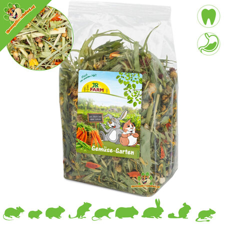 JR Farm Vegetable Garden es un alimento complementario ideal para conejos y otros roedores. Ajuste siempre la cantidad según la especie, el tamaño y los hábitos alimenticios del animal.