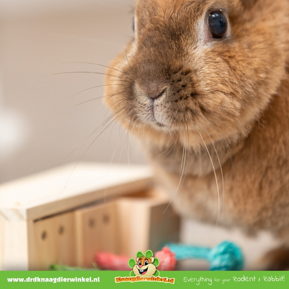 Bunny really loves getting their pellets and treats in this puzzle box.