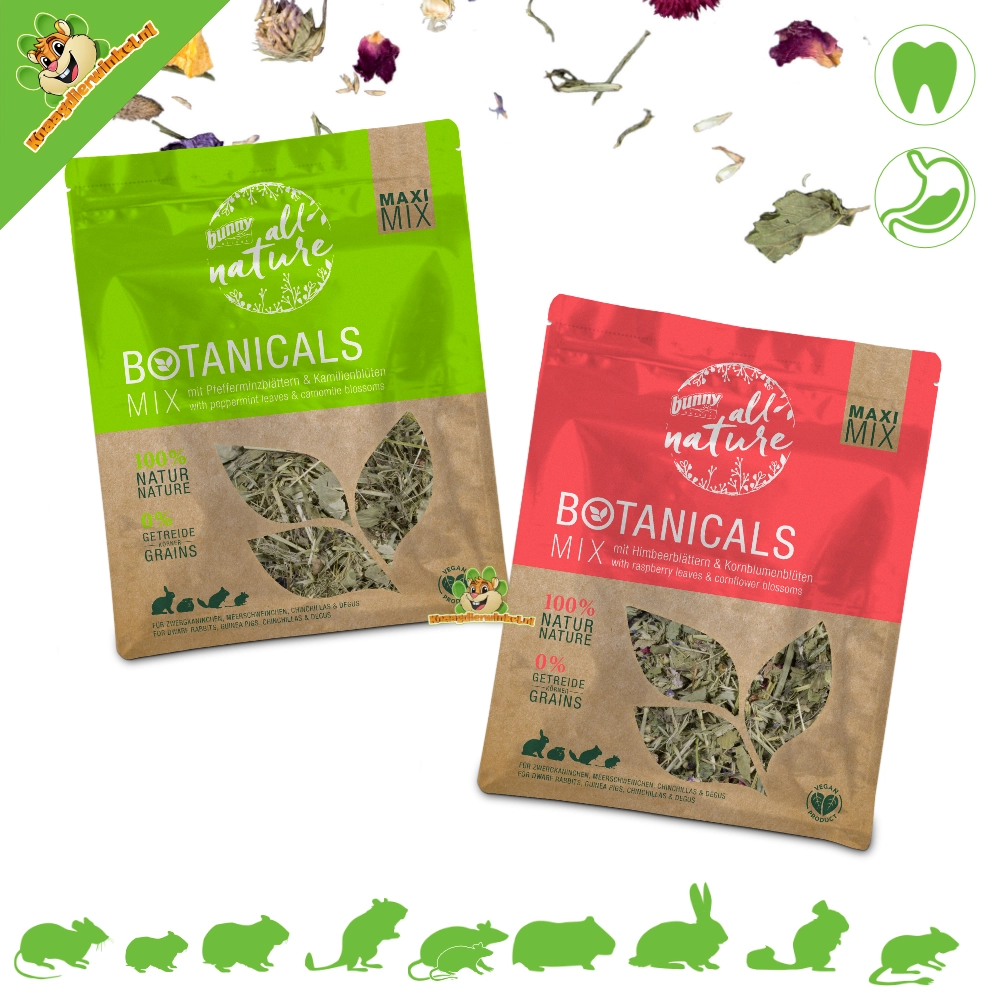 ¡Deja que tu roedor disfrute de los deliciosos sabores naturales de Botanicals Maxi Mix! Esta mezcla está especialmente desarrollada para conejos enanos, cobayas, chinchillas y degús, pero también es adecuada como enriquecimiento para otros roedores. Maxi Mix está disponible en dos sabores: