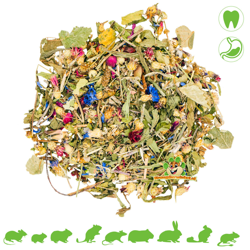 ✔ Diversidad natural: la mezcla contiene una variedad de hierbas y flores, que incluyen melisa, aciano, menta, plátano, hojuelas de guisantes, flores de rosas y salvia. Esto proporciona una dieta natural y diversa para los roedores.