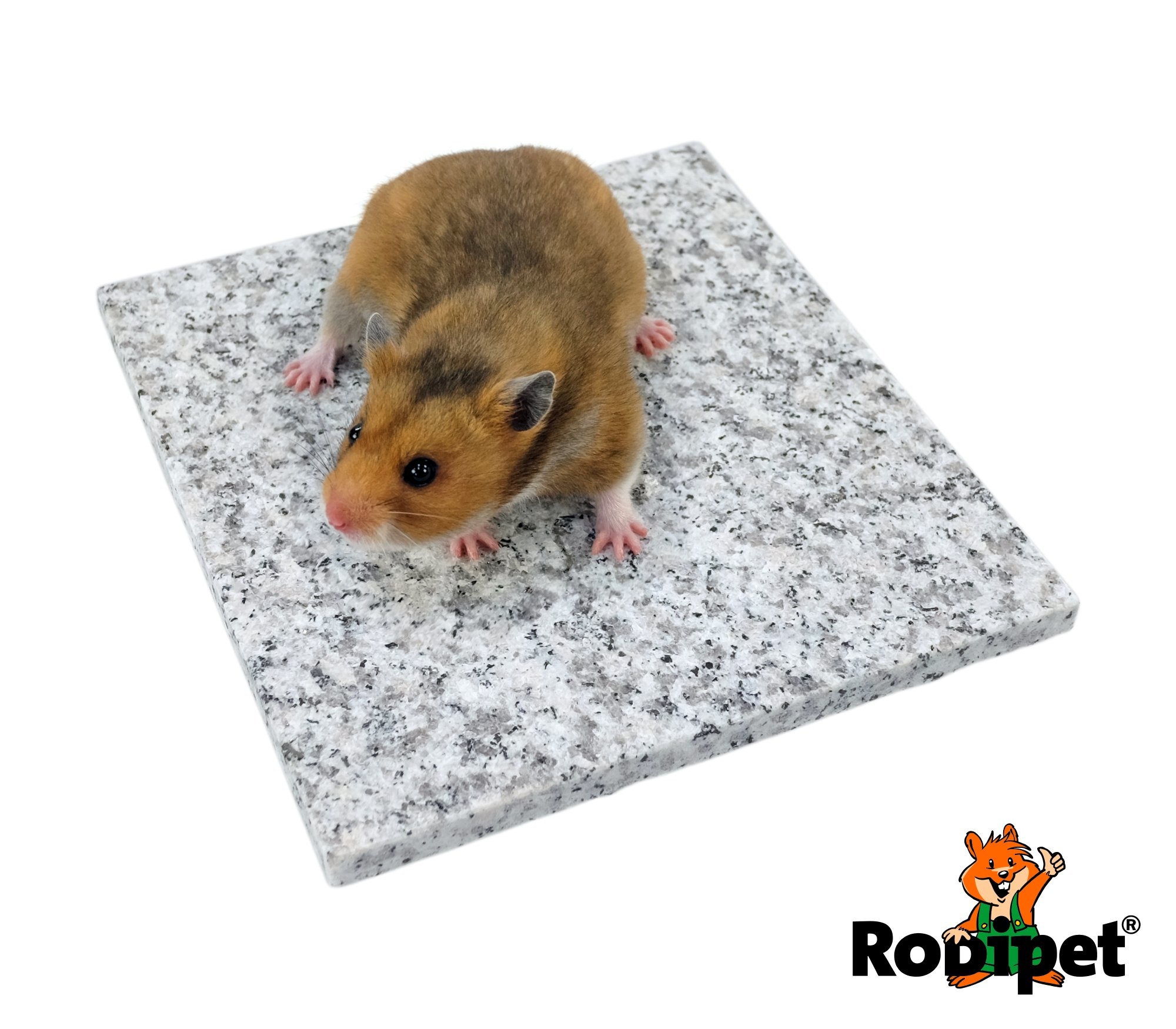 Los roedores sólo tienen un límite bajo de tolerancia al calor. En la naturaleza, cuando hace calor, los animales se retiran a la madriguera subterránea para refrescarse; ¡puedes imitar este efecto en la jaula con la piedra de granito! Consejo para los días calurosos: En los días especialmente calurosos se puede aumentar considerablemente el efecto refrescante dejando caer unas gotas de agua sobre el tejado de granito.