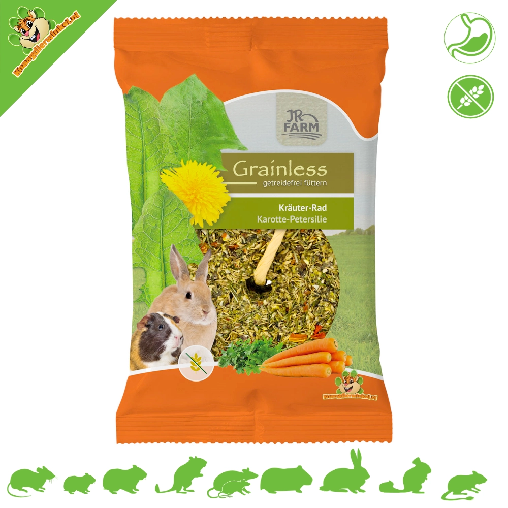 La rueda de hierbas sin cereales, zanahoria y perejil de JR Farm está diseñada para proporcionar a sus roedores un refrigerio sabroso y nutritivo. La combinación de zanahoria y perejil no sólo aporta sabor, sino también importantes nutrientes que contribuyen a su bienestar.