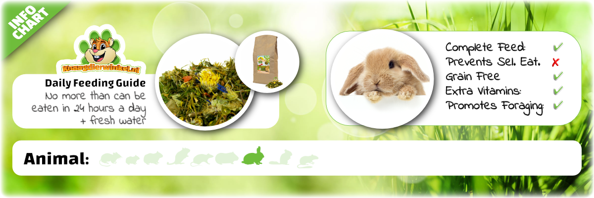 Mijn konijnen vinden het heerlijk en ik weet dat ik iets goeds geef zonder granen. Het is echt een aanrader. Dit is één van de beste merken qua voeding.