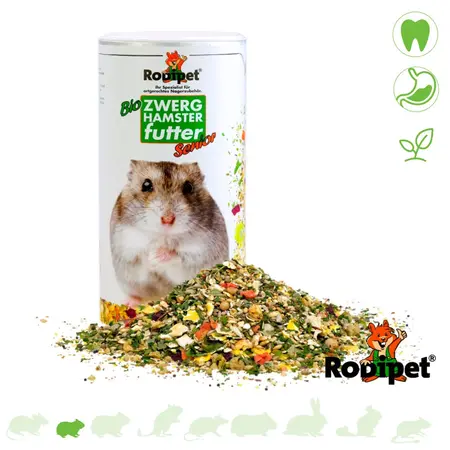 Aliment spécialement formulé pour les hamsters nains, tels que les hamsters nains de Roborovski , les hamsters nains chinois , les hamsters nains russes et les hamsters nains de Campbell , à partir de 13 mois. Ce mélange alimentaire adapté à l'âge des jeunes hamsters nains est inspiré de leur régime alimentaire à l'état sauvage.