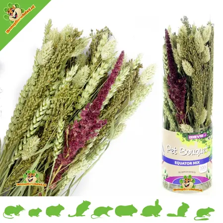 Bien sûr! Ce choix est idéal pour l’exploration des hamsters. Le Hamsterscaping consiste à se rapprocher du comportement naturel des animaux. Les petits rongeurs comme les souris, les hamsters nains, les hamsters, les gerbilles et les rats sont de véritables mangeurs de graines (granivores), en offrant une récolte riche en graines comme ce bouquet, le comportement naturel des animaux est stimulé. Les animaux qui peuvent montrer leur comportement naturel sont heureux et se sentent bien dans leur peau, c'est donc très important pour la santé de l'animal.