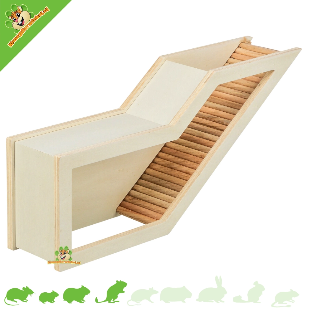 Pour les hamsters, ce système est idéal dans un environnement calme, avec une litière suffisante et un agencement logique. Pour les souris et les gerbilles, la combinaison d'escaliers, d'ouvertures et de hauteurs peut s'avérer particulièrement intéressante, intégrée à un parcours ou à un espace de jeu.