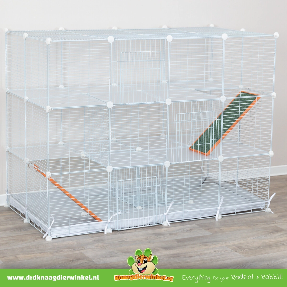 Contrairement aux cages traditionnelles, cette cage modulaire pour cobayes offre une liberté maximale : vous choisissez la forme, la hauteur et les possibilités d’extension. Idéale pour les cobayes, animaux naturellement actifs qui apprécient un espace de vie spacieux et dégagé au niveau du sol.