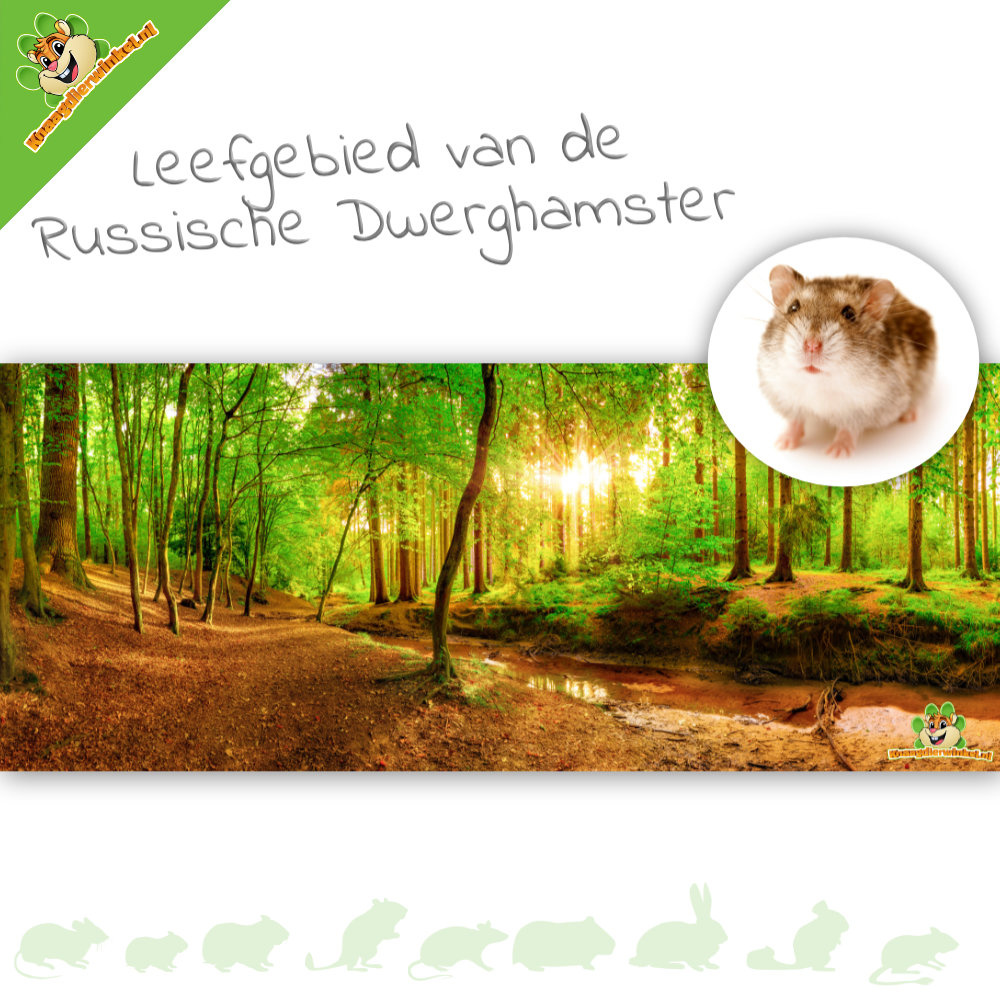 Nous rencontrons le hamster nain russe à divers endroits dans la nature. Son habitat principal est constitué des steppes du nord du Kazakhstan jusqu'aux montagnes de l'Oural et à la Sibérie. Les terriers du hamster nain russe sont assez horizontaux et moins abrupts que ceux du hamster nain Roborovski. Le couloir principal est situé à environ 1 mètre sous terre.