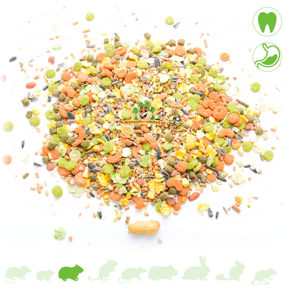 Oui, c'est un aliment naturel pour hamsters (hamsters syriens/hamsters dorés). Sa composition est adaptée aux besoins nutritionnels naturels de ces animaux. Des granulés compressés ont été ajoutés pour un apport supplémentaire en fibres et en vitamines, et pour favoriser l'hygiène dentaire.