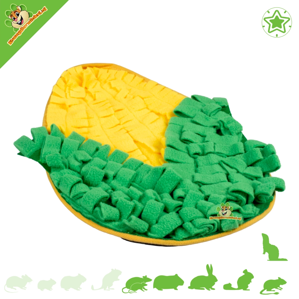 Le tapis à renifler Corn Snuffelmat apporte à la fois amusement et stimulation à l'enclos de votre animal. Ce tapis en polaire douce est conçu pour dissimuler des friandises entre ses lamelles, permettant à votre animal de renifler et d'explorer naturellement. La recherche stimule son intelligence, prévient l'ennui et favorise la détente.