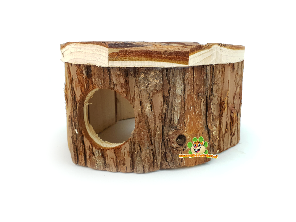 L'utilisation de bois brut et d'écorce s'intègre harmonieusement dans un intérieur naturel. De ce fait, cette maison se marie parfaitement avec de la litière, de la mousse, des brindilles, du liège, des tunnels et autres accessoires naturels. Ce modèle est également idéal si vous souhaitez un enclos calme et épuré.