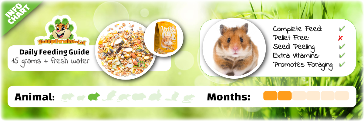 L'aliment Little One pour hamsters est enrichi en vitamines et minéraux essentiels pour garantir à votre hamster tous les nutriments nécessaires à sa santé optimale. Cela prévient les carences et contribue à son bien-être général.