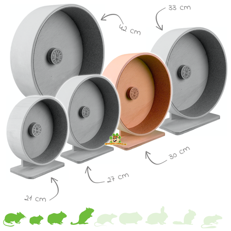 Echt een aanrader. Ik heb de 27 cm gekocht voor mijn Roborovski en hij krijgt hem met gemak vooruit. Is muisstil en in hoogte verstelbaar. De prijs is het helemaal waard.