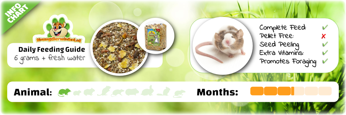 Prima voer! De muisjes smullen ervan. Wanneer ik het bakje bijvul gaan ze direct in de aanval.