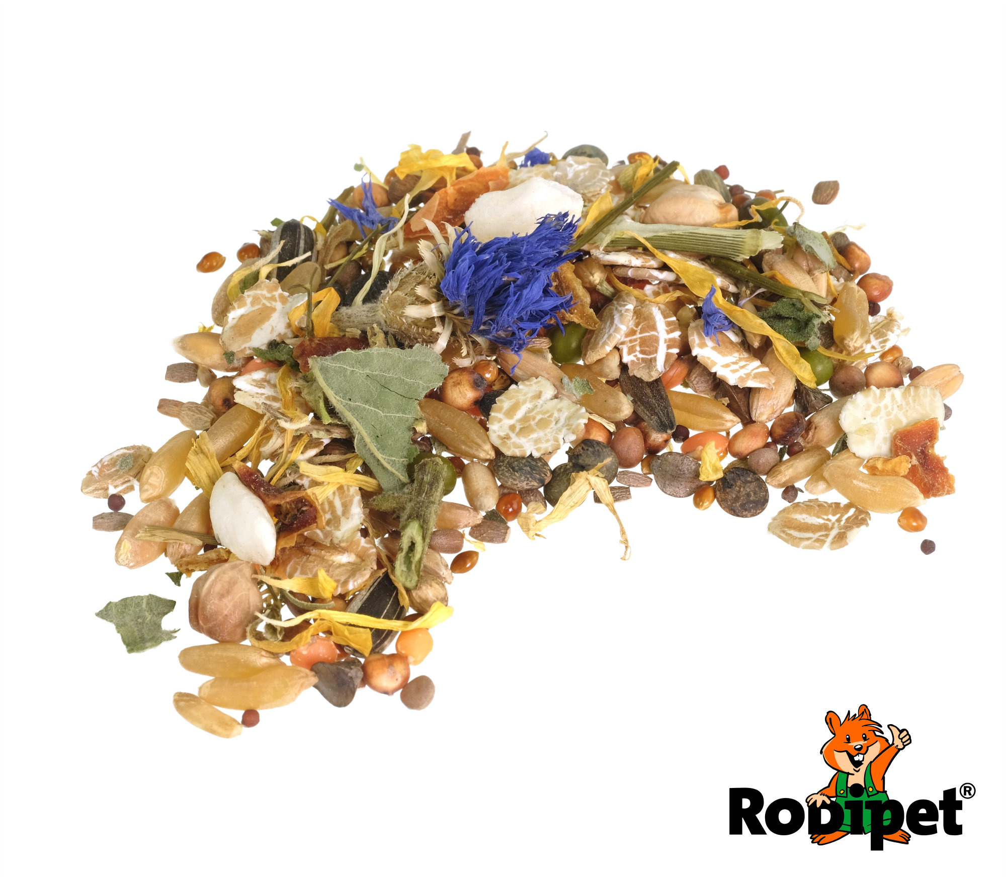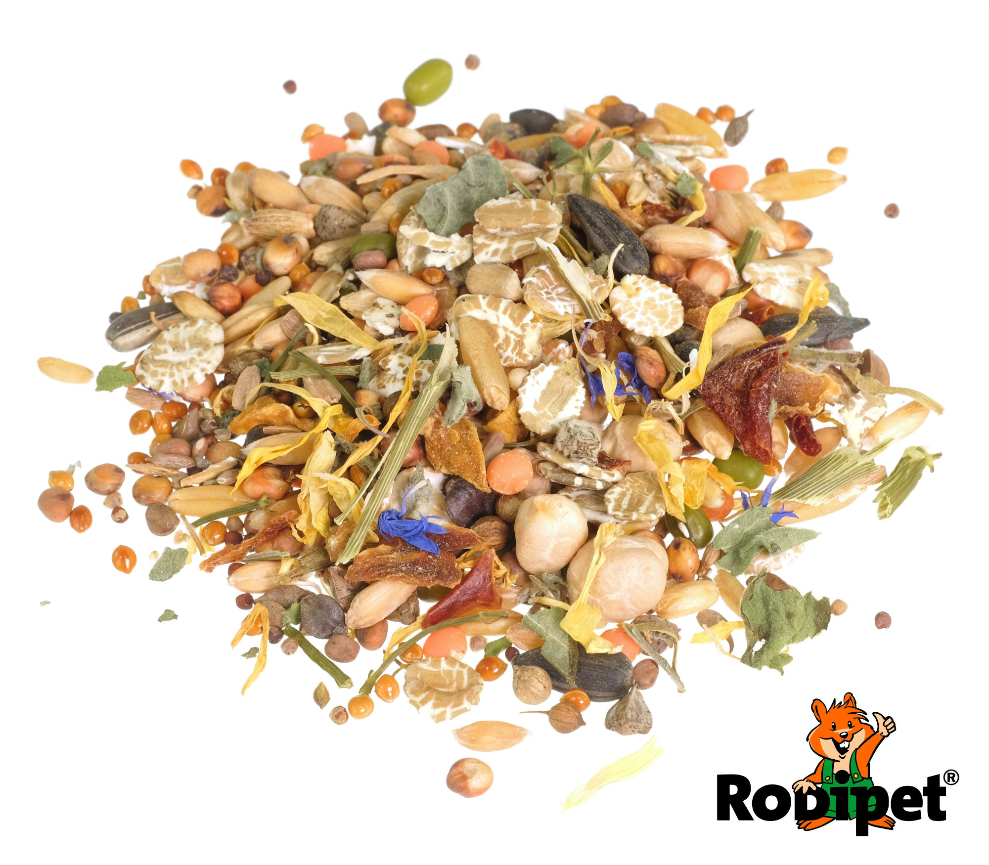 Offrez à votre petit gourmet un régal sensoriel avec l'assortiment d'aliments pour hamsters Rodipet et laissez-le découvrir le monde naturel !