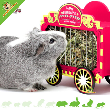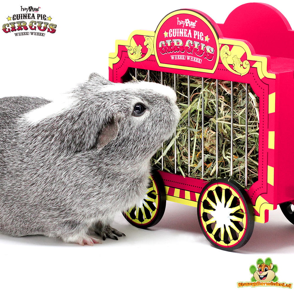 De HayPigs Circus Hooiwagen 23 cm is een leuke en praktische hooiruif voor dieren die graag de hele dag door kleine plukjes hooi eten. Vooral voor cavia’s en konijnen is een fijne hooiplek belangrijk, omdat hooi een vast onderdeel van het dagelijkse menu is. Deze houten hooiwagen maakt van dat eetmoment net iets meer dan alleen een voorraadplek. Door de vorm, open zijkanten en het afsluitbare dak is het een ruif die functioneel is, maar ook leuk oogt in het verblijf.