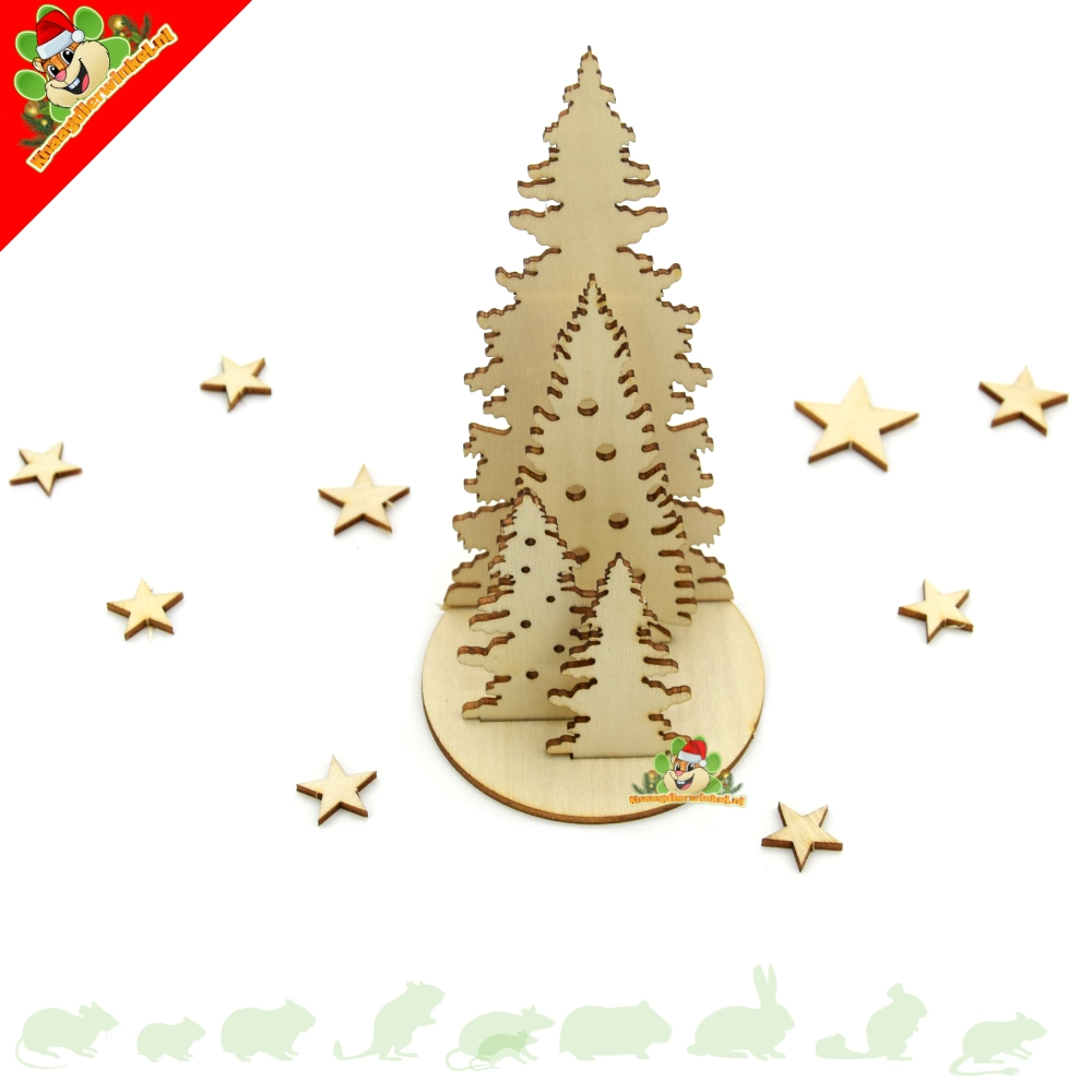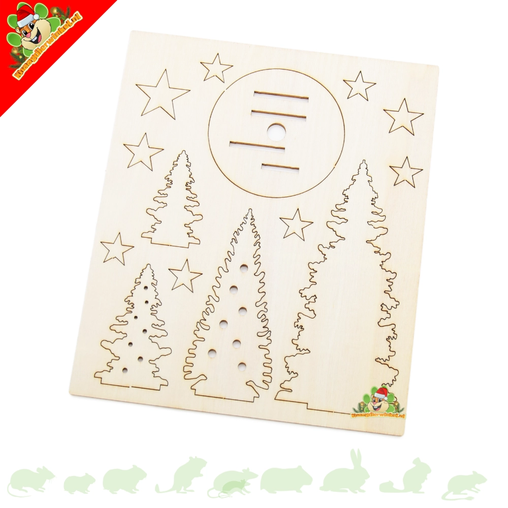 De DIY Hamsterscaping Kerstbomen en Sterren maken het eenvoudig om je hamsterverblijf te versieren in winterse sferen. De onderdelen zijn uitgesneden en laten zich uit het hout drukken. Dankzij het slimme ontwerp zet je ze zonder lijm of gereedschap in elkaar.